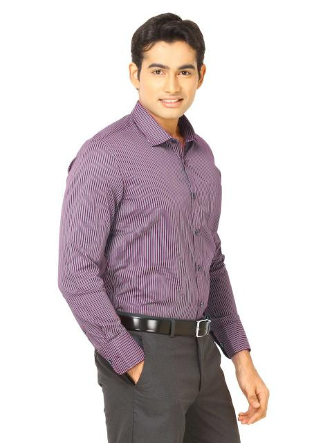 Stripes that add immense style to your formal look is what john miller brings into your life. Be the cynosure of all eyes in this stylish shirt, while the fabric keeps you fresh and comfortable all day. The full arm sleeves add a touch of regality to your personality. Pair it with formal trousers and black leather footwear for that classic look.Size and Fit