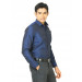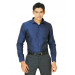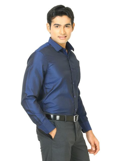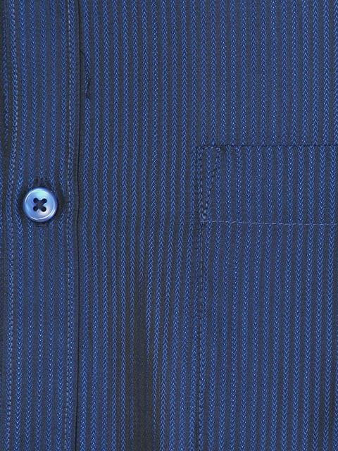 Navy blue shirt with black stripes, made of polyester-cotton blend fabric for shimmer, has a tipped collar, front buttoned placket, full arm sleeves and pocket on left chestWash care