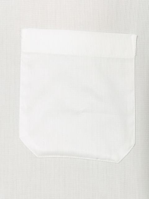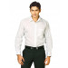 Solid white shirt made of polyester-cotton blend fabric, has a tipped collar, front buttoned placket, full arm sleeves with buttoned cuffs and pocket on left chest
