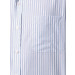 Blue and white striped shirt made of cotton fabric, has a spread collar, short sleeves, full buttoned placket, a patch pocket on the left chest and a curved hem