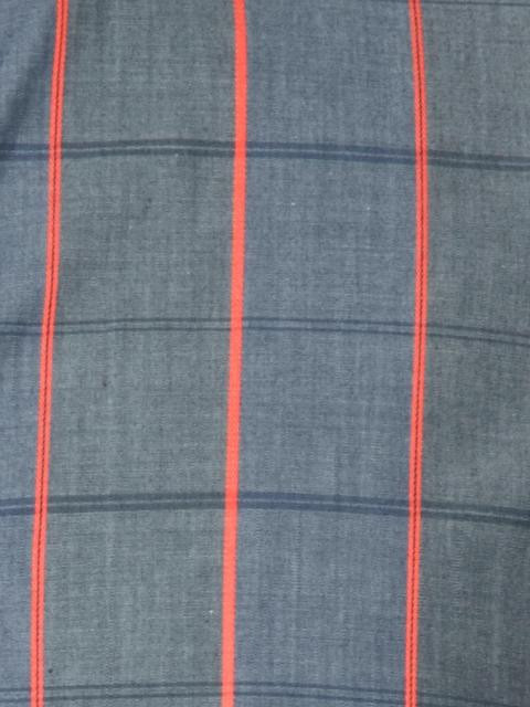 Grey shirt with black and blue stripes, made of 100% cotton, has a spread collar, full front buttoned placket, full sleeves with buttoned cuffs and a tailored hem