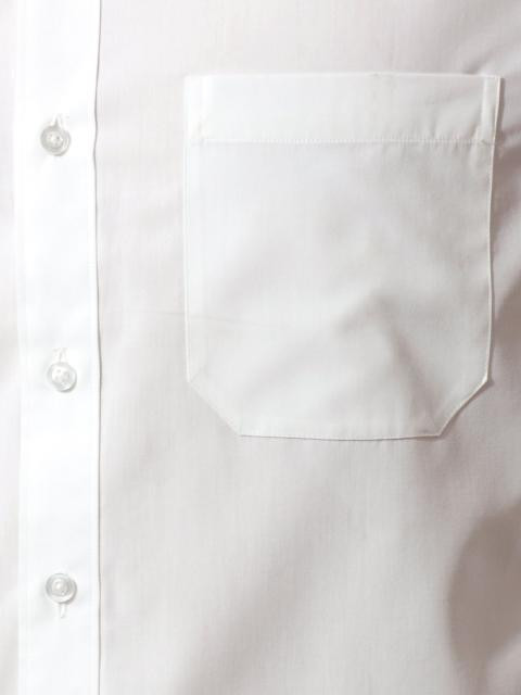 Bright white shirt with a narrow collar, full buttoned placket, long sleeves with buttoned cuffs and a patch pocket on the left chest