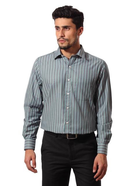 A striped, blended cotton shirt which adds a little style and some colour to your formal wear. Well styled with a contemporary Fit, this shirt can be paired with formal dark trousers and dark leather shoes to give you a daper look.