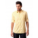 Yellow and white checked shirt made of cotton fabric, has a spread collar, long sleeves with buttoned cuffs, full buttoned placket, a patch pocket on the left chest, brand embroidered above the left chest pocket and a curved hem