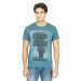 Blue round neck T-shirt made of 100% cotton, has short sleeves and graphic print on the chest