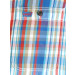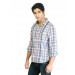 Blue, red, and mustard check shirt made of 100% cotton, has a spread collar with a full front button placket, full sleeves, pocket on the left chest with branding, and a curved hem