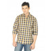 Mustard and purple check shirt made of 100% cotton, has full sleeves with two button cuffs, a spread collar, buttoned placket, pocket on the left chest and a curved hem