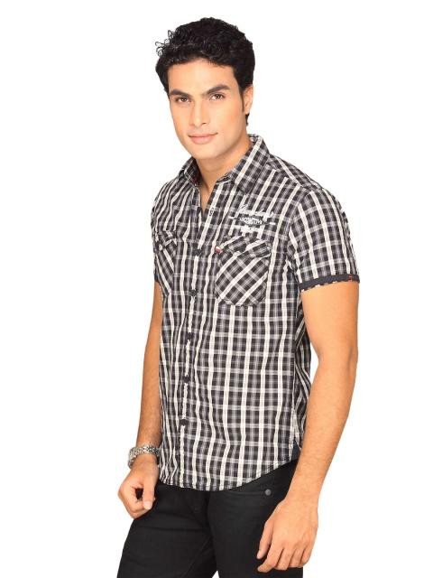 Get ready to take casual dressing to the next level with this black and white plaid check shirt from locomotive. The cool cotton fabric keeps you fresh all day while you hang out with your friends. This shirt can be teamed with low slung jeans and canvas shoes for a laidback look.