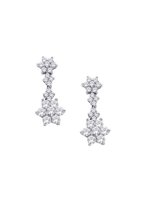 Two diamond shaped patterns with CZ diamonds encrusted with a big CZ studded floral detail dangling