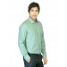 Green shirt with white stripes, made of blended cotton, has full sleeves with double buttoned cuffs, medium spread slim collar, buttoned placket with pearlescent white buttons, patch pocket on the left chest with stitch detailing and a curved hem
