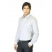 White shirt with grey and black pinstripes, made of blended cotton, has full sleeves with double buttoned cuffs, medium spread slim collar, buttoned placket with pearlescent white buttons, patch pocket on the left chest with stitch detailing and a curved hem