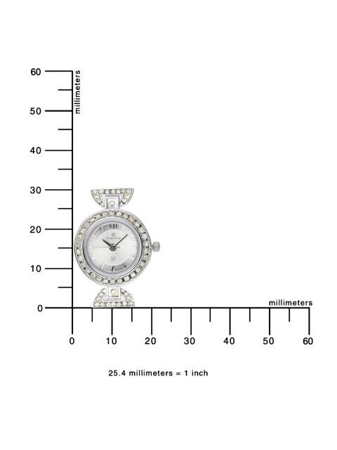Features: Branding on the 12 hour mark, crystal embellishments on the case and screw to reset time
