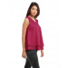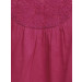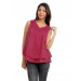 Dark pink sleeveless top, has a V neckline, lace panel on the yoke, gathers from below the yoke, two layers with the top layer ending before with a lace detail at the hem and the back layer extending from below