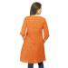 Printed orange kurta with a round neckline, made of 100% cotton, has a buttoned placket, purple panel stitched on the yoke, flaring pin-tucks from the midriff, three quarter sleeves and a vented hem