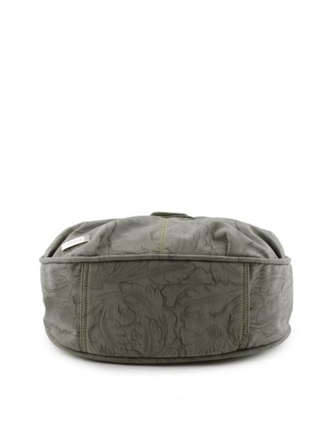 Floral textured leatherette upper with a metallic brand badge on the front and contrast stitch detailing