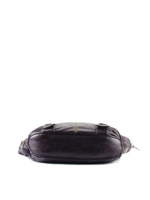 Made of textured two-tone leatherette with a metallic brand badge on the front and contrast stitch detailing