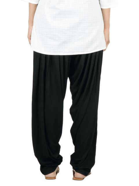 Black viscose patiala pants, with a drawstring at the waist, pleating on the thigh and a tapered leg