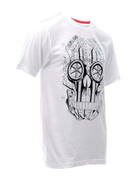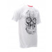 White crew neck t-shirt made of 100% cotton, with short sleeves, fabric tape on inseam of the neckline, graphic print on the chest and nike swoosh on left sleeve