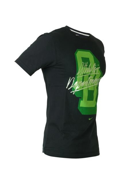 Get ready to hustle in this black t-shirt from nike. The bold graphic print speaks volumes of the power of nike's Athletic Department collection. Pair this tee with jeans and canvas shoes for a cool casual look.
