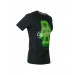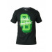 Black round neck t-shirt made of 100% cotton, with a ribbed neckline and grey tape detailing on the inseam, short sleeves and bold graphic print on the front