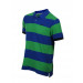 Blue and green striped polo t-shirt, made of 100% cotton, has ribbed collar and cuffs and a two-button placket