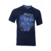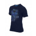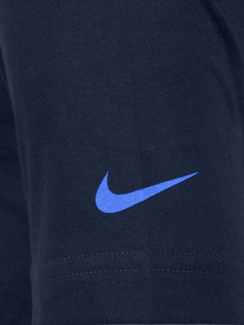 Navy Blue round neck t-shirt made of 58% cotton and 42% polyester, with short sleeves, fabric tape on inseam of the neckline, has graphic print on the chest and is engineered with Dri-Fit technology