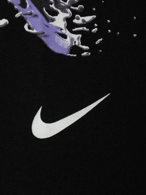 Black round neck t-shirt made of 58% cotton and 42% polyester, with short sleeves, fabric tape on inseam of the neckline, graphic print on the chest and engineered with Dri-Fit technology
