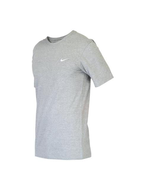 Grey crew neck T-shirt for men made of 100% cotton, has short sleeves and nike swoosh embroidered on left chest