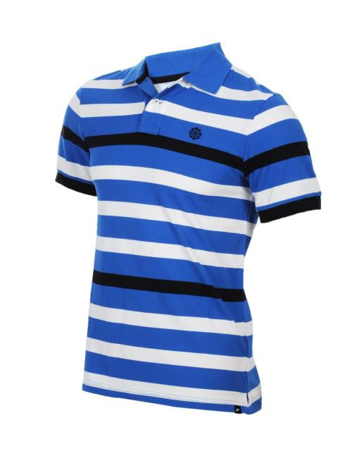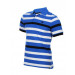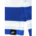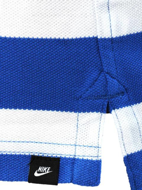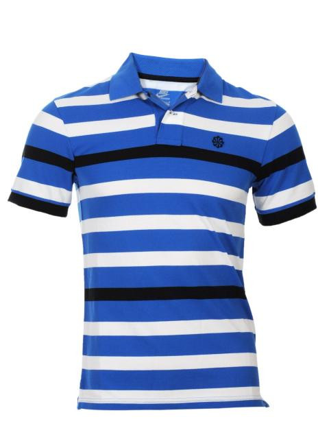 White and blue striped polo t-shirt made of 100% cotton, with a woven tag with nike corporate logo at the hem, ribbed collar and cuffs, and a two-button placket