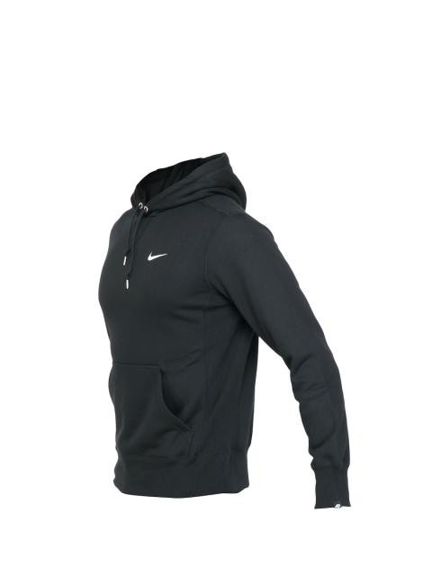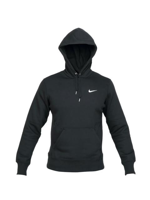 Black hoodie sweatshirt with the body and hood made of 80% cotton and 20% polyester and ribbing made of 97% cotton and 3% spandex, has a hood with drawstrings, full sleeves with ribbed cuffs, ribbed panels along the sides and hem, pockets on the front waist and embroidered nike swoosh on the left chest