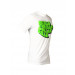 White round neck t-shirt made of 100% cotton, with a ribbed neckline and grey tape detailing on the inseam, short sleeves and bold graphic lettering on the chest