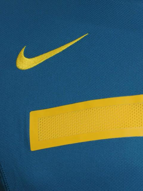 Flaunt your support for the Brazilian soccer team in style with this CBF t-shirt from nike. Created using Dri-fit polyester fabric, the mesh panels on the sides ensure absolute ventilation and the fabric keeps you fresh and comfortable all day. Gear up for sweat free days with this tee. Pair this with shorts or tracks and soccer shoes for absolute style and comfort.