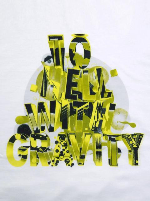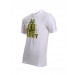 White round neck t-shirt made of 100%cotton, with a ribbed neckline that has a grey fabric tape inseam, short sleeves and graphic print on the front