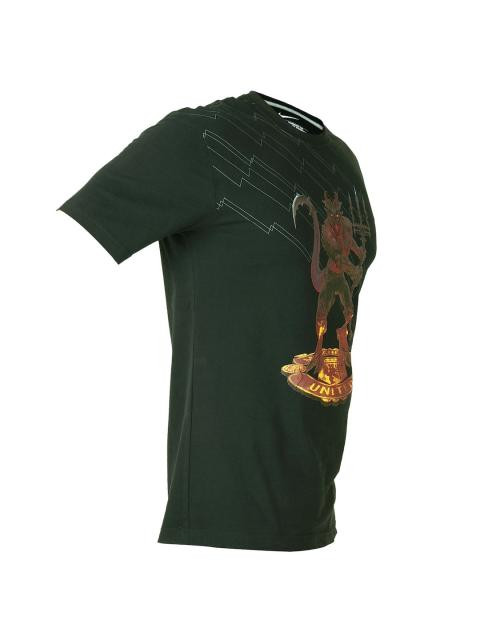Sport the menacing mascot of the brilliant soccer team, manchester united, and spark fear in your competition on the field in style in this nike t-shirt. Made of pure organic cotton, you are assured of fresh, sweat-free comfort while you win those goals for your team in style. Pair this with football shorts and football shoes when on the field, or with jeans and floaters on a casual day.
