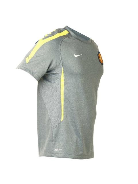 Grey t-shirt made of Dri-Fit 100% polyester fabric, with ribbed crew neck and fabric tape on the inseam of the neckline, contrast tape at shoulders, sleeves and sides, short sleeves, club badge on left chest, meshed on the sides and back and screen print on the centre back neck