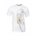 White crew neck t-shirt made of 100% cotton, with short sleeves, fabric tape on inseam of the neckline, graphic print with metallic tints on the chest and nike swoosh on left sleeve
