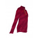 Maroon high collared t-shirt made of 100% polyester, has a half-length zipper, raglan sleeves with flat-seam design for range of motion and reduced irritation, and a reflective loop on the centre-back neck to keep media-player cords out of the way