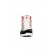 A closer look at the mid-top of the shoe shows how perfectly and seamlessly the various materials of the upper are integrated. The outsole is made of an “S” shaped rubber with the herringbone pattern covering the entire area, including the raised sections of the forefoot of the outsole. The raised sections in the front part of outsole are split into three and coloured in red, with the larger portion holding the jumpman logo separated by a horizontal flex groove that extends through the entire forefoot. Move on to the lateral side of the shoe, and you shall find a red midsole that is hiding behind small slits cut in the outsole.
