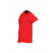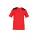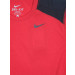 Red round neck short sleeved t-shirt made of 100% polyester and engineered with Dri-Fit technology, has contoured panels, a mesh back, black panels on the shoulders and brand logo in black on left chest