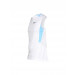 White round neck sleeveless t-shirt with contoured panels, engineered with Dri-Fit technology, made of 100% polyester with a mesh back, blue panels on shoulders and brand logo in black on left chest