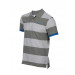 White and grey striped polo t-shirt, made of 100% cotton, has ribbed collar and cuffs and a two-button placket