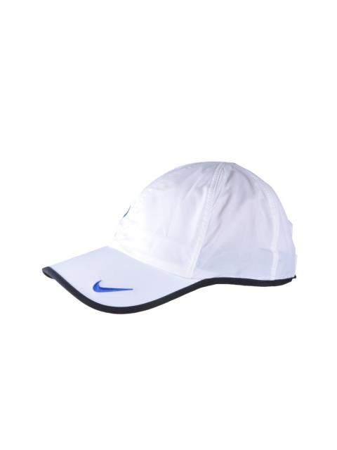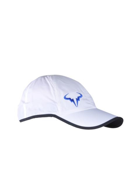 Time to cheer for your favourite tennis player, Rafael Nadal in this white featherlight tennis cap from nike. Pledge your allegiance to this talented Spanish tennis player as you wear it to cheer during his matches, or when you're serving an ace yourself! All you environmentalists will be glad to know that this cap is made with recycled content. Engineered with Nike's Dri Fit technology, it wicks away sweat to keep you dry and comfortable. This smart cap is super light, so you barely know that it's on your head, protecting you from the sun or jazzing up your outfit! Team it with your casual clothes for a sporty look.
