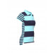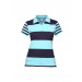 Blue polo neck t-shirt with short sleeves made of 100% cotton, with dark and light blue colored stripes, front buttoned placket, ribbed collar and hem, vented hem and brand logo embroidered on the left chest
