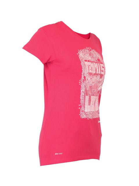 Update your casual style with this round neck T-shirt from nike. The Dri-Fit fabric keeps you feeling fresh and comofrtable all day by wicking sweat away from the body, while the graphic print with the words "tennis begins, with love" gives you an added edge. Team this with jeans and sneakers for a casual look.
