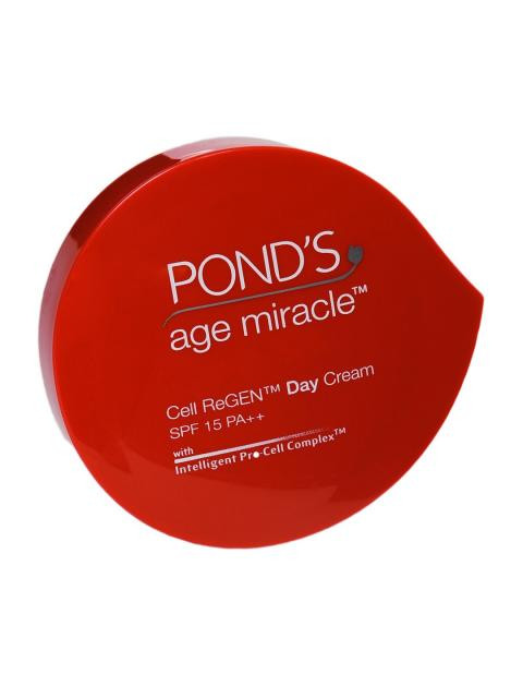 Pond's Age Miracle Cell ReGEN day cream has SPF 15 PA ++ to protect your skin and Intelligent Pro Cell Complex technology which helps your skin renew 3 times faster, penetrating deeper to give you younger looking skin