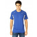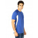 Blue solid T-shirt, has a round neck, short raglan sleeves
