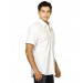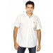 White half sleeved shirt made of 100% cotton, full length buttoned placket, pocket on the left chest with embroidered band logo and a curved hemline