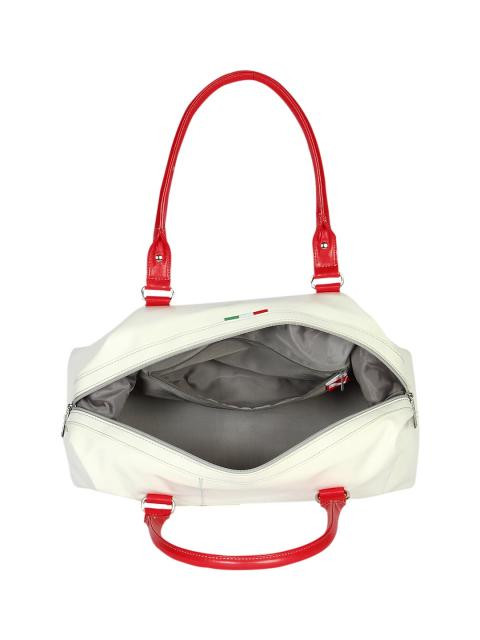 The ferrari LS handbag celebrates puma and Ferrari&rsquo s successful partnership with branded elements and distinctly smooth aesthetic. The sporty silhouette is decked out with lux Italian material and emblems, including a Ferrari shield and Italian flag label. The large main compartment features zip, slip, and mobile phone pockets. Finishing touches include a handle design with a belt buckle and brushed silver hardware.