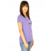 Purple round neck t-shirt made of 100% cotton, has a ribbed neckline with tape detailing on the inseam, mega sleeves, embroidered cat logo behind the collar, stitch detailing on the side seams and brand name graphic on the chest