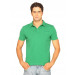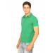 Green polo neck t-shirt with short sleeves, made of 100% cotton, front buttoned placket, vented hem, and brand name and logo embroidered on the left chest